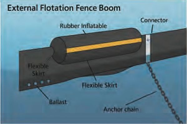 Because the ballast chain is slightly shorter than the inflated boom, the system remains under constant tension during sweeping operations, maintaining an optimal hydrodynamic shape for effective oil retention. The external-chain design also makes the boom easy to clean and lowers maintenance requirements during redeployment.